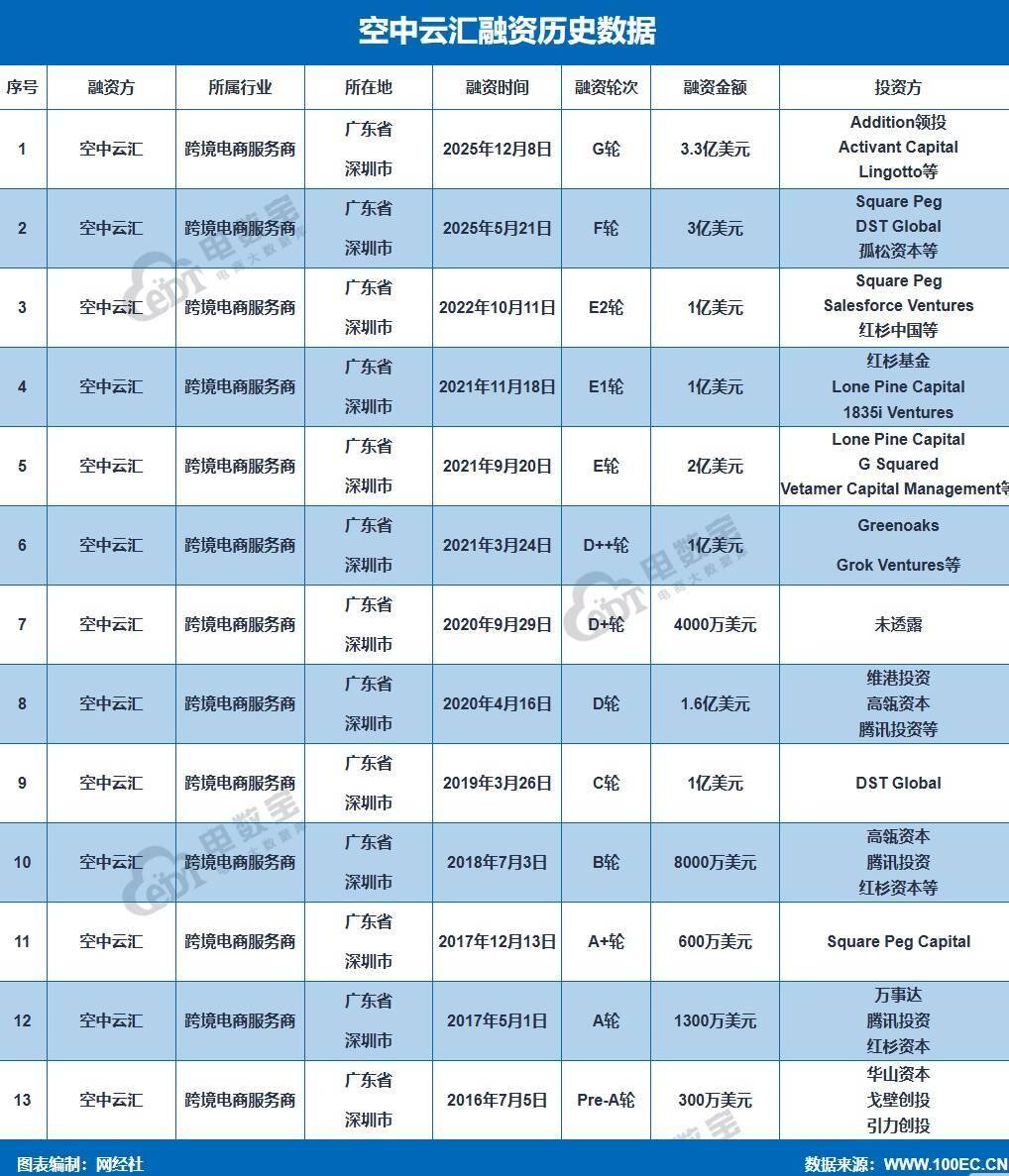 空中云汇完成3.3亿美元G轮融资 估值跃升至80亿美元