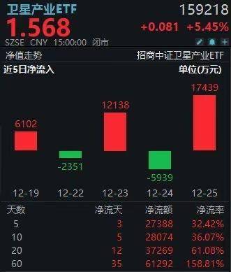 卫星板块市场表现 - 12月25日卫星板块全面爆发,表征板块的卫星产业ETF(159218)强势收涨5.45% [1] - 该ETF前两大权重股航天电子、中国卫星双双涨停,带动板块人气 [1] - 市场交投空前活跃,该ETF单日成交额突破4.5亿元,盘中获净流入约1.7亿元,其成交、价格与资金流入三项指标均创下历史新高 [1] 行业范式转变与核心逻辑 - 市场认知发生根本转变:一旦低轨卫星星座具备分布式算力,其商业模型将从电信服务跃迁为覆盖全球的AI计算平台 [3] - 太空的无限太阳能与全域覆盖优势,使其成为解决地面算力能耗瓶颈的理想场所 [3] - 近期Starcloud在轨训练AI成功等进展,正快速验证这一前景 [3] 产业链需求与投资工具 - 范式革命意味着卫星需从“通信节点”升级为“智能节点”,将驱动对星载芯片、能源系统及高性能卫星的全新需求 [3] - 卫星产业ETF覆盖全产业链,正在成为资金布局这场颠覆性变革的核心工具 [3]