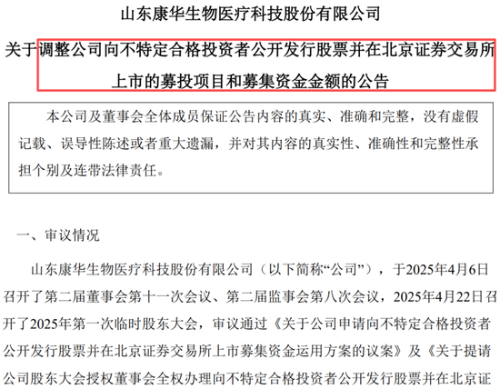 正在冲刺北交所IPO的新三板创新层公司康华股份,在收到监管二轮问询被要求20个工作日内回复的当口,突然宣布砍掉两个募投项目,整体募资额也大 幅缩水,这期间发生了什么? 12月24日康华股份公告,拟调整本次发行上市具体方案中的募投项目和募集资金金额,募投项目从5个减至3个,保留项目募资额则不同程度削减,这样整 体募资额从5.62亿元缩水到了3.68亿元,降幅达到35%。公司未给出具体原因,仅表示系"结合相关法律、法规和公司实际发展及未来规划"。 飞瞰财金注意到,康华股份在更新完半年报财务数据重启审核后,于12月9日收到了北交所上市委的二轮问询。首轮问询监管就对公司募投项目的必要性 和合理性提出质疑,要求说明新增产能消化能力、项目是否与市场需求匹配、投资规模的合理性等。二轮问询监管继续追问公司募投项目"是否存在无法 达到预期经济效益的风险",要求进行风险揭示。 01 募投项目是否必要、合理? 据北交所官网,5月22日,山东康华生物医疗科技股份有限公司(下称"康华股份")IPO获受理。项目于9月16日披露第一次问询回复后随即申请中止,于 11月21日更新半年报后恢复审核,并于12月9日收到了二轮问询。 招股说明书显 ...