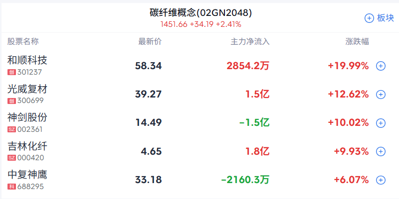 A股开盘速递 | A股走势分化 沪指稍强!碳纤维概念领涨两市