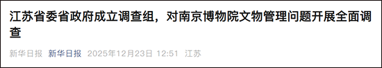 江苏省委省政府成立调查组,对南京博物院文物管理问题开展全面调查
