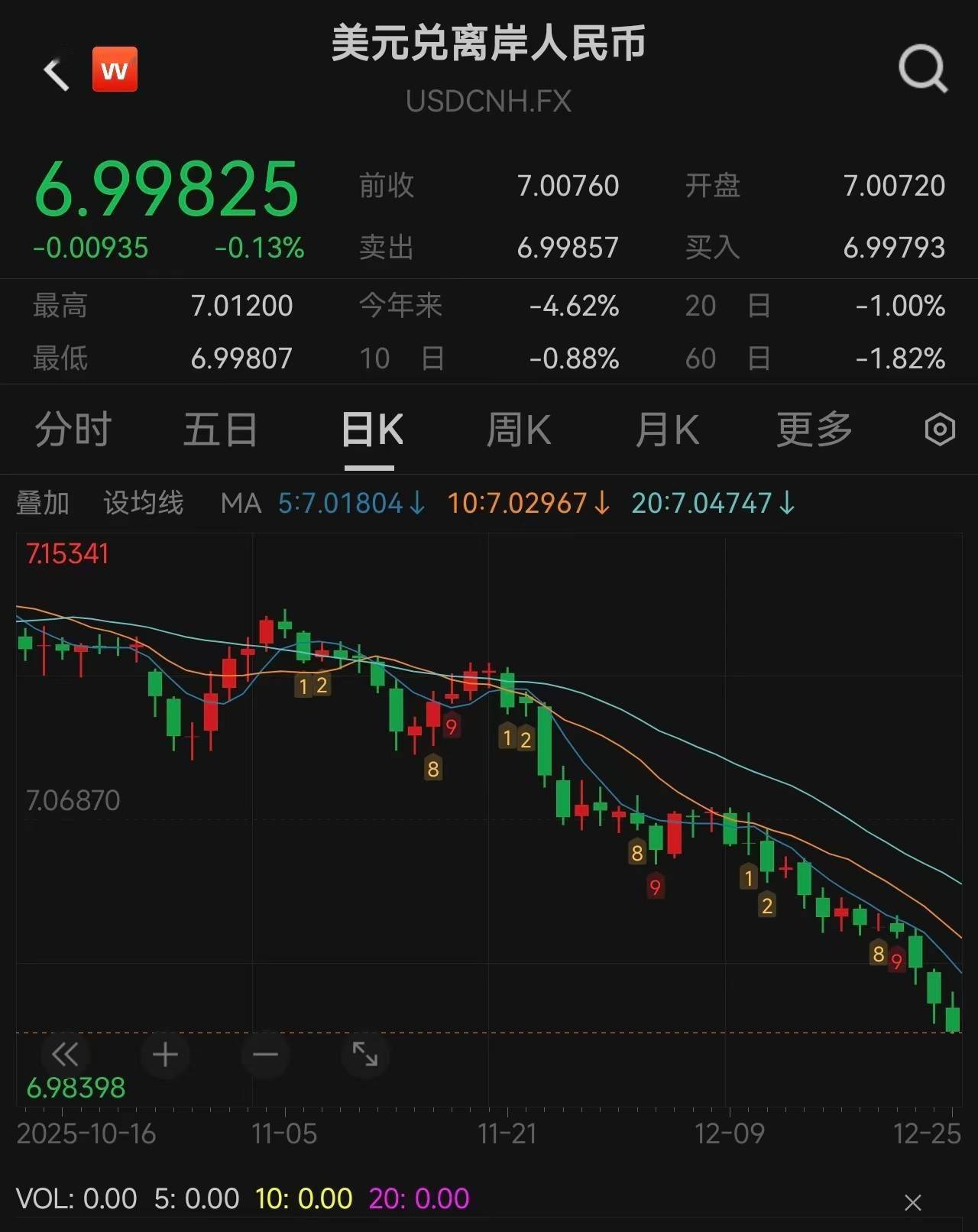 离岸人民币对美元升破7.0关口!为2024年9月以来首次,对A股市场影响几何?
