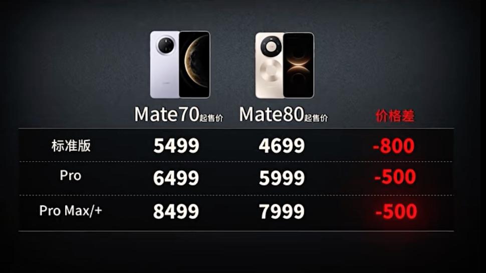 你正在刷微信抖音的手机,是不是快3年没换了? 虽然,感觉人人都在买新iPhone,换新旗舰。 但其实,坚持用买了3、4年的手机,舍不得换的人,才是中国的大多数。 2025年,中国用户平均换机周期接近33个月,与20年相比拉长近40%。 所以,现在还用3年前的手机,甚至还在用刚有5G时入手的Mate 30、iPhone 12、小米10,都不算特别。 中国手机市场正进入一个"钉子户时代",在这个特殊的时代,我们见到太多过去无法想象的事情。 比如以前你能想象吗,华为和苹果,居然搞起了"性价比"。 11月底,Mate 80系列发布,华为居然降价了。 标准版降800,Pro版降500,比5年前Mate 40的起售价还低。 | | Mate70z #6 | Mate80 ## | 价格콜 | | --- | --- | --- | --- | | 标准版 | 5499 | 4699 | -800 | | Pro | 6499 | 5999 | -500 | | Pro Max/+ | 8499 | 7999 | -500 | 一年前的2024年,在旗舰机发布周期内,米OV三家的百度搜索指数,就算不说旗鼓相当,至少也有可比 ...