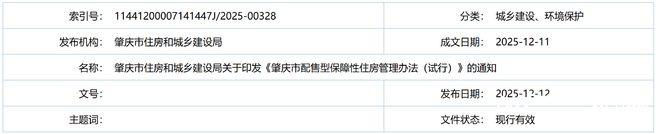 为规范配售型保障性住房的建设与管理,满足工薪收入群体及人才的住房需求,《肇庆市配售型保障性 住房管理办法(试行)》(以下简称《办法》)近日正式出台并实施。该办法对此类住房的建设筹集、 申购条件、销售价格、退出机制等关键环节作出了明确规定,有效期3年。 在销售与流转环节,《办法》规定将实行现房销售模式,并建立轮候制度。申购流程涵盖方案公示、资 格审核、公开选房及签约等步骤,以确保公平公正。尤为关键的是,此类住房将实行封闭管理,其不动 产权证书上将进行专门标注,严禁以任何形式变相流入商品房市场。购房人不得擅自出租、出借或改变 房屋用途。 对于日后可能发生的退出情形,《办法》指出,若购房者在本市另购商品住房,或因工作调动、户籍迁 离等原因不再符合条件,可由政府指定的机构进行回购。回购价格将按照原购买价格,结合持有年限逐 年进行折旧计算。因继承或离婚析产等原因发生产权变更的,房屋的保障属性保持不变。 在供应对象上,《办法》明确:一是具有项目所在地户籍的住房困难家庭,要求主申请人已在本地稳定 就业并参保;二是被认定为"西江人才计划"高层次人才的群体,此类申请不受户籍限制。两类申请者均 需满足本人及家庭成员在本市无自有住 ...