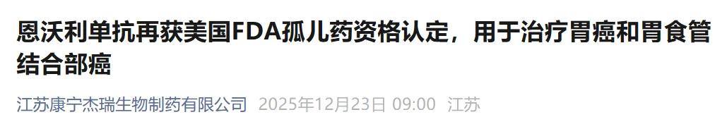 恩沃利单抗又一适应症获FDA孤儿药资格认定