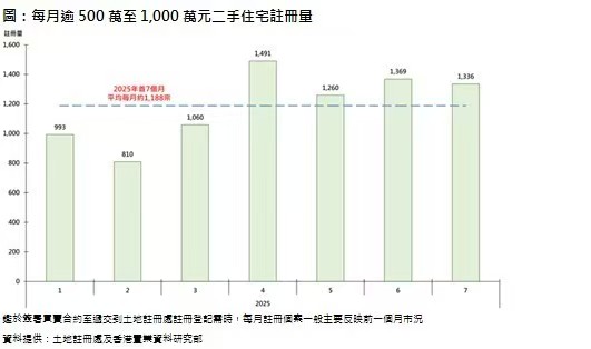 香港置业:香港7月逾500万至1千万港元二手住宅录得1336宗注册