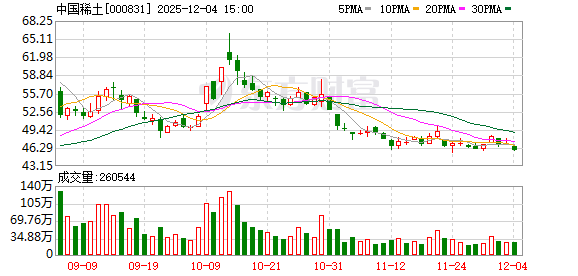 大宗交易与市场表现 - 12月4日,公司发生一笔大宗交易,成交量为15.10万股,成交金额为692.94万元,成交价格为45.89元,该价格与当日收盘价持平,折溢价率为0.00% [2] - 该笔大宗交易的买方为机构专用席位,卖方为中信证券股份有限公司上海分公司 [2] - 当日公司股票收盘价为45.89元,下跌2.30%,日换手率为2.46%,成交额为11.99亿元 [2] 资金流向与融资情况 - 12月4日全天,公司主力资金净流出1.59亿元 [2] - 近5个交易日,公司股价累计下跌0.28%,资金合计净流出7396.78万元 [2] - 公司最新融资余额为21.40亿元,近5日增加6000.02万元,增幅为2.88% [3] 公司基本信息 - 公司全称为中国稀土集团资源科技股份有限公司,成立于1998年06月17日 [3] - 公司注册资本为106122.0807万人民币 [3]