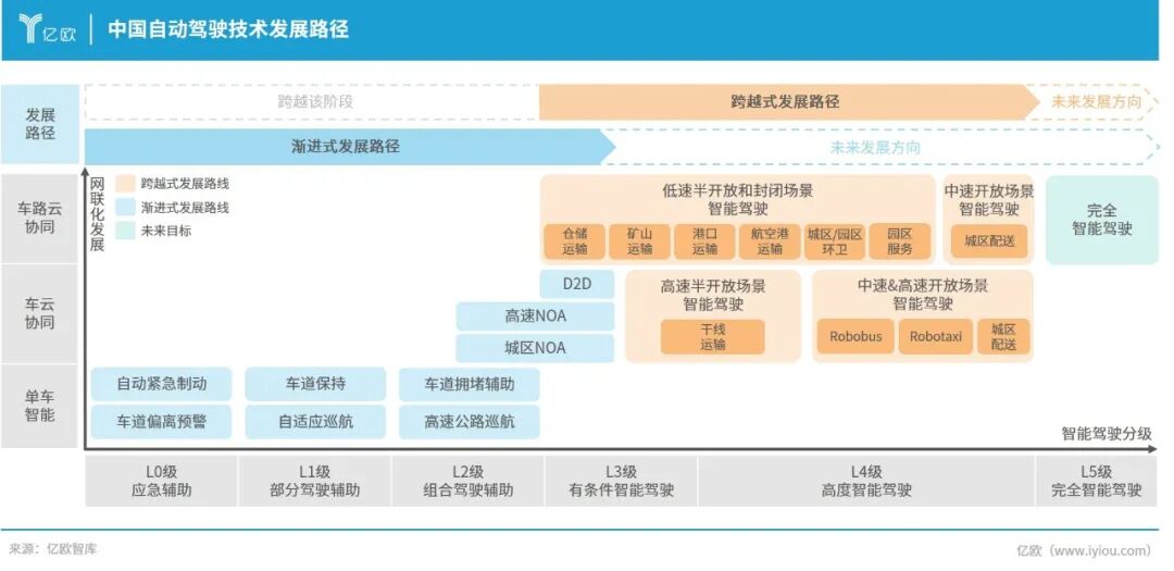 场景层面,Robotaxi、无人配送、干线物流等多场景试点加速从低速封闭向中高速开放场景跨越。 在政策红利释放、核心技术进步与应用场景拓展的共同作用下,2025年五城L4车辆保有量预计突破10万辆,带动相关产业链规模超200亿元,标志着"全 民智驾"元年正式开启。 L4智驾的发展背景概览 2025年L4智驾场景化应用加速发展,亿欧汽车研究院认为2035年中国L4级别及以上智能驾驶市场规模有望突破45万亿元。 L4级智能驾驶商业化进程显著提速,呈现政策、技术、场景三轮驱动格局。 政策层面,国家级规划与五城全域开放试点明确事故责任划分,破除制度障碍; 技术层面,系统成本持续下探,车路云协同能力增强,提升复杂环境可靠性; L4级智驾已成为跨越式技术路线的主战场,产业生态庞大、格局趋明。 资本集中注入头部企业,政策逐步开放多类场景的L4智驾试点,商业化按"中低速封闭场景→高速开放场景"路径逐级拓展; 技术端以"车-云"与"车-路-云"协同为标配,感知-决策-控制专利持续攀升,推动研发测试迅速转入试运营和规模化落地。 L4智驾的商业化应用现状分析 低速半开放和封闭场景L4智驾基本已进入商业模式探索阶段和全面推广应用阶段 ...