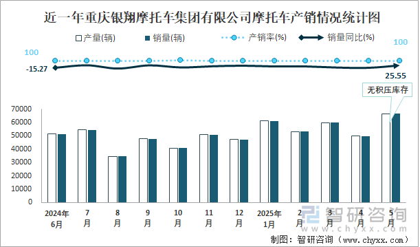 2025年5月重庆双庆产业集团有限公司摩托车产销量分别为120辆和120辆 产销率为100%