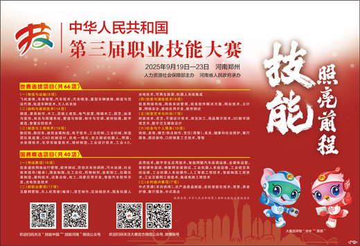2025年9月19日—23日 河南郑州 人力资源社会保障部主办 河南省人民政府承办 技能照亮前程 世赛选拔项目(共66项) (一)物流与运输(8项) 飞机维修、车身修理、汽车技术、汽车喷漆、重型车辆维修、物流与货运代理、轨道车辆技术、无人机 系统 (二)结构与建筑技术(14项) 砌筑、家具制作、木工、混凝土建筑、电气装置、精细木工、园艺、油漆与装饰、抹灰与隔墙系统、管 道与制暖、制冷与空调、瓷砖贴面、数字建造、智慧安防技术 (三)制造与工程技术(19项) 数控铣、数控车、建筑金属构造、电子技术、工业控制、工业机械、制造团队挑战赛、CAD机械设 计、机电一体化、自主移动机器人、焊接、水处理技术、化学实验室技术、增材制造、工业设计技术、 工业4.0、光电技术、可再生能源、机器人系统集成 (四)信息与通信技术(8项) 信息网络布线、网络系统管理、商务软件解决方案、网站技术、云计算、网络安全、移动应用开发、软 件测试 (六)社会与个人服务(10项) 烘焙、美容、糖艺/西点制作、烹饪(西餐)、美发、健康和社会照护、餐厅服务、酒店接待、口腔修 复工艺技术、零售 国赛精选项目(共40项) (一)传统赛项(16项) 信息通信 ...