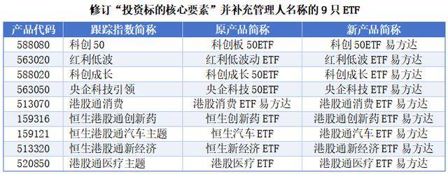 【导读】 行业首家!易方达全量ETF完成规范命名 中国基金报记者 方丽 随着沪深交易所ETF命名规范落地进入倒计时,头部基金公司率先完成 调整 。 12月30日,易方达基金发布公告,宣布对旗下45只ETF简称进行批量调整,调整将于2026 年1月5日正式生效。调整完成后,易方达成为行业首家实现旗下全部ETF规范命名的基金公 司,其管理的117只ETF均统一采用"投资标的核心要素+ETF+管理人名称"的标准格式命名, 为 6 万亿元规模的ETF市场树立了标准化标杆。 易方达分三批完成全量ETF更名 一则公告,揭开了易方达的大动作! | 基金代码 | 基金名称 | 原扩位证券简称 | 变更后扩位证券简称 | | --- | --- | --- | --- | | 510900 | 易方达恒生中国企业交易型开放 | 恒生中国企业 ETF | 恒生中国企业 ETF 易方达 | | | 式指数证券投资基金 | | | | 512010 | 易方达沪深 300 医药卫生交易型 | 医药 ETF | 医药 ETF 易方达 | | | 开放式指数证券投资基金 | | | | 512070 | 易方达沪深 300 非银行金融交 ...