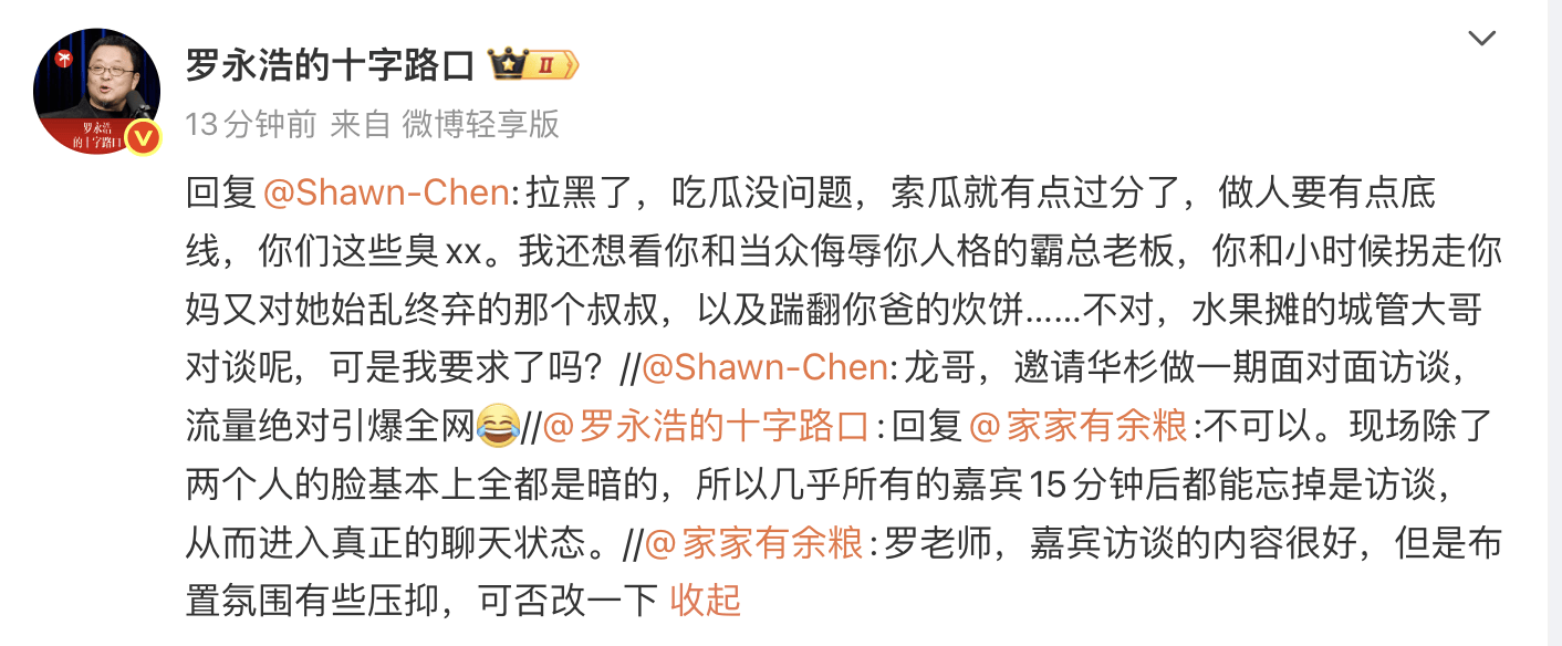 罗永浩回应网友建议邀请华杉访谈:吃瓜没问题,索瓜有点过分