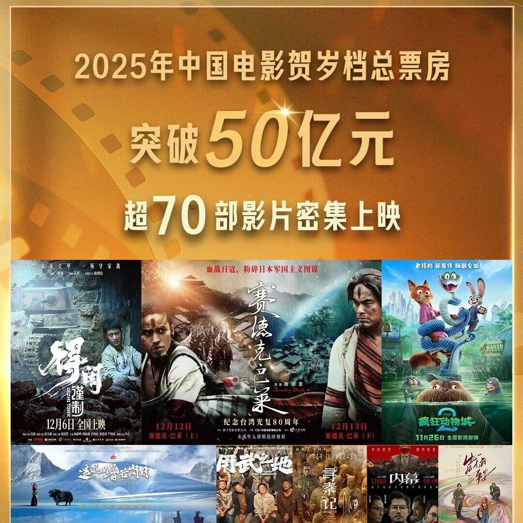 超70部中外影片密集上映!2025年贺岁档电影票房破50亿元