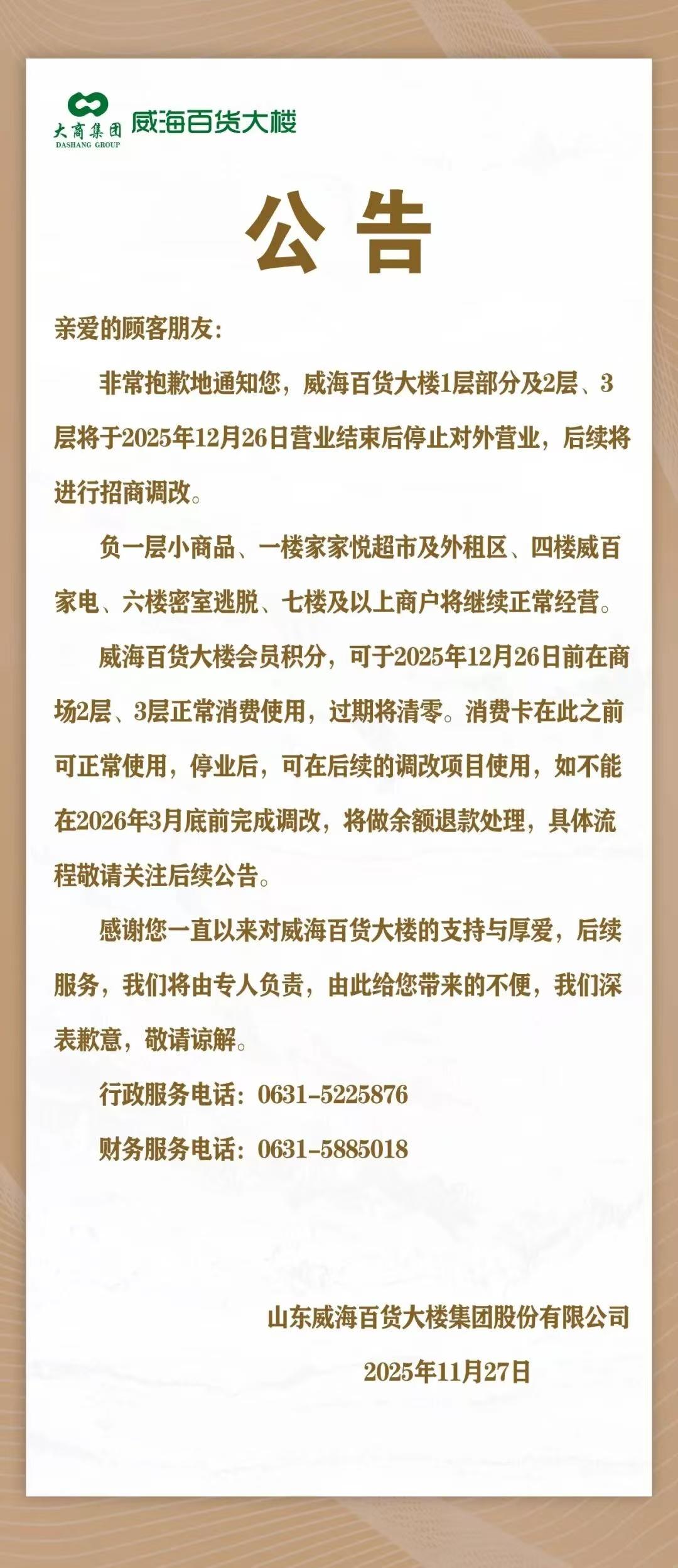 威海百货大楼部分停业,59年商业地标的“微转身”