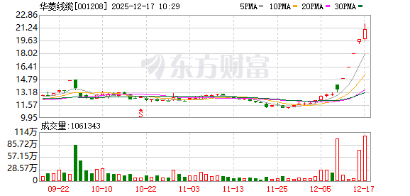 华菱线缆盘中涨停,已连收4个涨停板,截至9:33,该股报19.77元,换手率23.50%,成交量6189.85万 股,成交金额12.06亿元,涨停板封单金额为12.81亿元。连续涨停期间,该股累计上涨46.44%,累计换 手率为34.55%。最新A股总市值达126.20亿元,A股流通市值52.07亿元。 龙虎榜数据显示,该股因连续三个交易日内,涨幅偏离值累计达20%上榜龙虎榜1次,买卖居前营业部 中,机构净卖出1701.07万元,深股通累计净卖出535.30万元,营业部席位合计净买入6387.02万元。 据天眼查APP显示,湖南华菱线缆股份有限公司成立于2003年07月01日,注册资本63835.0432万人民 币。(数据宝) 近日该股表现 | 日期 | 当日涨跌幅(%) | 换手率(%) | 主力资金净流入(万元) | | --- | --- | --- | --- | | 2025.12.15 | 9.98 | 2.97 | 4485.31 | | 2025.12.12 | 10.03 | 2.01 | 6320.97 | | 2025.12.11 | 10.00 | 6.08 | 16774.86 | ...