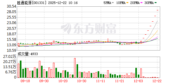股价表现与交易数据 - 胜通能源股价于盘中涨停,已连续收获7个涨停板,截至当日9:25,股价报28.75元[2] - 连续涨停期间,该股累计上涨94.92%,累计换手率为2.54%[2] - 当日换手率为0.15%,成交量29.78万股,成交金额856.26万元,涨停板封单金额高达16.66亿元[2] - 最新A股总市值达到81.14亿元,A股流通市值为56.67亿元[2] 近期资金流向与龙虎榜 - 龙虎榜数据显示,该股因连续三个交易日内涨幅偏离值累计达20%而上榜3次[2] - 在买卖居前的营业部中,机构席位净卖出483.00万元,而营业部席位合计净买入7093.12万元[2] - 根据近期表现表格,在连续涨停的多个交易日中,主力资金均为净流入状态,例如2025年12月19日净流入1879.49万元,12月18日净流入1318.68万元[2] 公司基本信息 - 胜通能源股份有限公司成立于2012年11月13日,注册资本为28224万人民币[2]