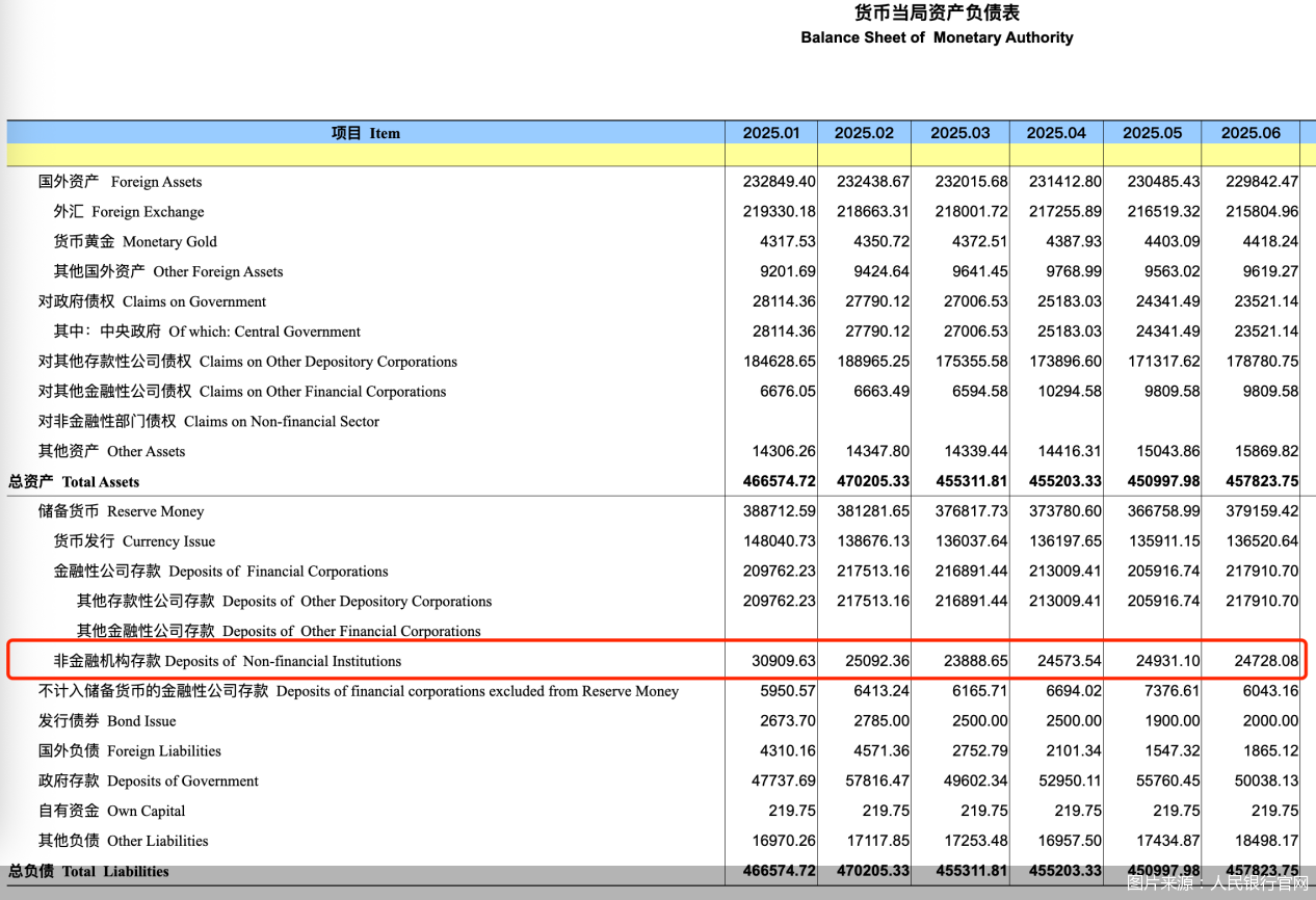 北京商报讯(记者 廖蒙)最新一期支付机构备付金数据披露。7月28日,北京商报记者注意到,中国人民银行日前公布了最新货币当局资产负债表。数据显 示,截至2025年6月,非金融机构存款(即支付机构备付金)为24728.08亿元,较2025年5月的24931.10亿元,下降203.02亿元。 | 项目 Item | 2025.01 | 2025.02 | 2025.03 | 2025.04 | 20 | | --- | --- | --- | --- | --- | --- | | 国外资产 Foreign Assets | 232849.40 | 232438.67 | 232015.68 | 231412.80 | 2: | | 外汇 Foreign Exchange | 219330.18 | 218663.31 | 218001.72 | 217255.89 | 21 | | 货币黄金 Monetary Gold | 4317.53 | 4350.72 | 4372.51 | 4387.93 | | | 其他国外资产 Other Foreign Assets | 9201.69 | 9424.64 | 96 ...