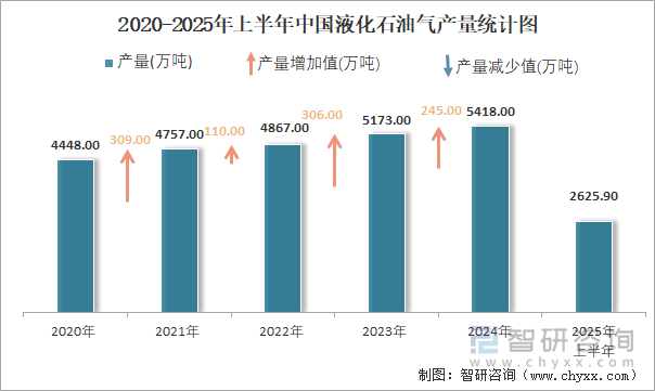 2025年1-6月中国液化石油气产量为2625.9万吨 累计下降2.6%
