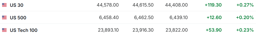 1. 8月13日(周三)美股盘前,美股三大股指期货齐涨。截至发稿,道指期货涨0.27%,标普500指数期货涨0.20%,纳指期货涨0.23%。 | ■ US 30 | 44,578.00 | 44,615.50 | 44,408.00 | +119.30 | +0.27% | | --- | --- | --- | --- | --- | --- | | ■ US 500 | 6,458.40 | 6,462.50 | 6,439.10 | +12.60 | +0.20% | | 틀 US Tech 100 | 23,893.10 | 23,916.30 | 23,822.00 | +53.90 | +0.23% | 2. 截至发稿,德国DAX指数涨0.70%,英国富时100指数涨0.22%,法国CAC40指数涨0.49%,欧洲斯托克50指数涨0.86%。 | = 德國DAX30 | 24,217.76 | 24,248.67 | 24,127.10 | +167.64 | +0.70% | | --- | --- | --- | --- | --- | --- | | * 英國富時100 | 9,168.0 ...