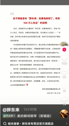 胖东来最新声明:从未发布“电商倒闭致500万人失业”言论,请立即停止传播并删除