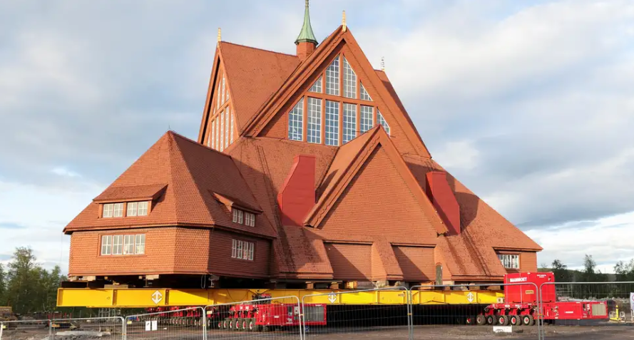 重达672吨!瑞典百年大教堂上演“搬家记”,通过滑轮装置缓慢“平移”
