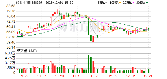 12月24日硕世生物大宗交易一览 | 成交量 | 成交金额 | 成交价格 | 相对当日收盘折 | 买方营业部 | 卖方营业部 | | --- | --- | --- | --- | --- | --- | | (万股) | (万元) | (元) | 溢价(%) | | | | 5.88 | 373.38 | 63.50 | -6.08 | 平安证券股份有限公 | 华西证券股份有限公 | | | | | | 司山东分公司 | 司济南分公司 | 硕世生物12月24日大宗交易平台出现一笔成交,成交量5.88万股,成交金额373.38万元,大宗交易成交 价为63.50元,相对今日收盘价折价6.08%。该笔交易的买方营业部为平安证券股份有限公司山东分公 司,卖方营业部为华西证券股份有限公司济南分公司。 (文章来源:证券时报网) 两融数据显示,该股最新融资余额为3.25亿元,近5日增加408.82万元,增幅为1.27%。 据天眼查APP显示,江苏硕世生物科技股份有限公司成立于2010年04月12日,注册资本8387.1721万人 民币。(数据宝) 进一步统计,近3个月内该股累计发生3笔大宗交易,合计成交金额为1014.4 ...