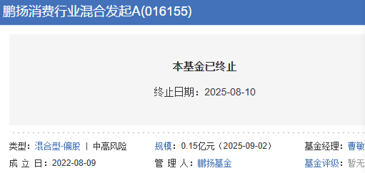 鹏扬消费行业混合发起式清盘