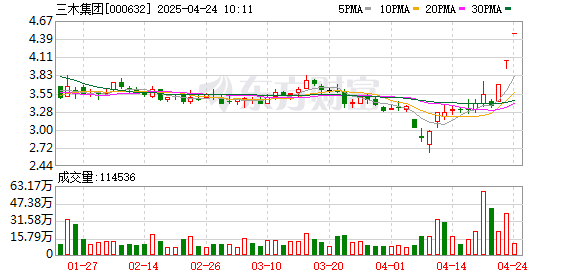 股价表现 - 三木集团连续3个交易日涨停 累计涨幅达33.43% 最新股价报4.47元[2] - 涨停板封单金额为1.45亿元 换手率1.51% 成交量702.26万股 成交金额3139.10万元[2] - 连续涨停期间累计换手率为14.53% 最新A股总市值和流通市值均为20.81亿元[2] 资金动向 - 龙虎榜数据显示机构净买入296.08万元 营业部席位合计净卖出1260.47万元[2] - 主力资金近期呈现大幅波动 4月22日净流入4025.44万元 4月23日净流出2689.12万元[2] - 4月10日出现涨停时主力资金净流入1430.90万元 4月18日净流入1892.20万元[2] 股东结构 - 股东户数连续3期增长 最新股东户数为29833户 较4月10日增加1807户[2] - 股东户数环比增长6.45% 显示筹码呈持续分散趋势[2] 财务表现 - 2024年前三季度营业总收入94.33亿元 同比下降8.68%[2] - 前三季度净利润亏损0.91亿元 同比下降878.44%[2] - 2024年业绩预告预计净利润亏损5.30亿元至4.80亿元 同比变动区间为-66.13%至-50.46%[2]