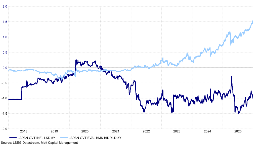 智通财经APP获悉,对冲日元兑美元汇率风险的需求正在上升,这或许是日本利率上行开始影响套利交易的第一个信号。在日本央行12月加息并 暗示未来仍可能进一步收紧货币政策之后,日本利率已升至数十年来高位——日本五年期国债收益率升至约1.5%,这是2008年以来未曾见过的水 平。尽管名义利率已经上升,但盈亏平衡通胀预期也同步上行,这意味着日本的实际利率仍然处于深度负值区间。 远期利率 五年期日元远期利率目前仍处于关键水平,暗示突破可能迫在眉睫。如果隔夜利率之间的利差持续收窄,可能会对远期利率施加更大压力,促使 其进一步压缩。 总体而言,要使日本的实际利率转为正值,五年期名义利率需要升至约2.5%以上,这一水平相当于假设的盈亏平衡通胀率,也是当前名义利率与 实际利率之间的差值。这意味着,如果日本央行最终目标是将利率推升至正区间,日本五年期利率在未来几个月可能仍需要显著上行。 更高的日本五年期利率将意味着美日利差将明显收窄,除非美国利率与日本利率同步上升、甚至上升得更快。但鉴于市场预计美联储将在2026年 降息,美国利率上行速度快于日本的可能性似乎并不大。 最终,这一趋势是否持续,很大程度上取决于日元能否相对美元走强。尽 ...