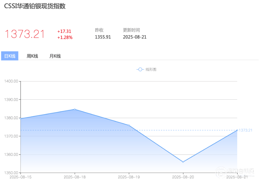 【华通白银网8月21日讯】•周四亚洲交易时段,银价小幅升至37.85美元。 •美联储降息押注和工业需求支撑银价。 •市场准备迎接美联储周五晚些时候在杰克逊霍尔举行的年度研讨会。 周四(8月21日),亚市盘交易时段,银价窄幅震荡上涨至37.85美元附近。对美联储在9月会议上降息的预期支撑了银 价。本交易日关注欧美国家PMI数据、美国初请失业金人数变动、美国7月成屋销售年化总数,以及杰克逊霍尔年会的 相关消息。 今日,上海华通铂银国标一号银定盘价报9153元/千克,结算价报9125元/千克。 美国7月批发价格跳升,7月零售销售报告稳健增长,令美联储大幅降息50个基点的前景黯淡。然而,投资者仍预计今 年会降息。 (CSSI华通铂银现货指数日K线图) 根据芝加哥商品交易所(CME)的FedWatch工具,交易员目前预计9月降息25个基点的可能性为83%。较低的利率可能会 降低持有白银的机会成本,从而支撑这种不产生收益的贵金属价格。 此外,不断增长的工业需求,尤其是可再生能源和电子等行业的需求,可能会推动白银上涨。据路透社报道,太阳能 应用的白银需求是2025年整体消费的重要贡献者,与全球创纪录的太阳能光伏系统安装一致 ...