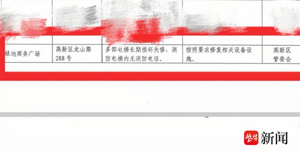 "整栋商业大楼都无法办理营业执照,我们商户如何生存?"近日,苏州高新区绿地商务广场的商户驰先生向扬子晚报反映,今年1月,该广场因电梯长期 损坏失修等问题,被苏州市安全生产委员会挂牌整改。整改完成后却迟迟未复查摘牌,导致商户无法正常办理营业执照,生计受影响。商户追问广场物业 方时,对方仅回应"已上报验收",但拒绝透露具体上报时间和部门。 记者现场探访,广场内电梯正常运行,商户照常营业。市场监管部门回应称该广场已成功摘牌,营业执照可正常办理。 | 绿地商务广场 | 高新区龙山路 | 多部电梯长期损坏失修,消 | 按照要求修复相关设备设 | 高新区 | | --- | --- | --- | --- | --- | | | 288 号 | 防电梯内无消防电话。 | 施。 | 管委会 ** 新闻 | 苏州绿地商务广场被挂牌整改 投诉人:商户"苦等复查",生计受到影响,物业拒绝透露细节 驰先生反映,2025年1月,苏州市安全生产委员会在《苏安(2025)3号》文件第24页第94条中明确指出,绿地商务广场存在"电梯长期损坏失修、消防电梯 无消防电话"的问题,随后对其实施挂牌整改。 物业方称早在5月10日便已完成整改工作。 ...