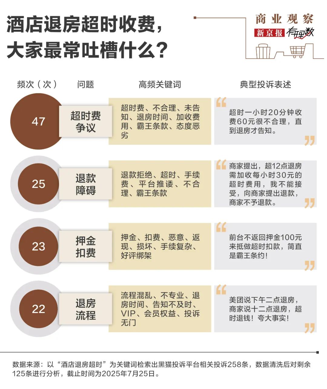 下午4点入住,第二天早晨11点退房;想要12时入住或者15时退房均另外支付699元。今年暑期,上海一酒店的入住和退房时间引起网友热议,网友吐 槽"这个规定太不方便了。"江苏省消费者权益保护委员会对此表示,如此服务不可取,应加强服务的柔性化,提升服务口碑。 长期以来,酒店退房时间一直受到旅客诟病。深夜抵店、清晨赶路的客人,即便只短暂休息几小时,也可能要支付全天住宿费。2024年6月,有男子吐槽 早上6点入住一酒店,当日下午2点被要求退房,住了8个小时,交了一天房款。 目前,我国大部分酒店实行"22小时退房制","下午2点入住、中午12点退房"成了行业内的"默认规则"。 这种"住不满24小时却算一天"的体验,让"花钱买时间"的消费者总有些憋屈。"算起来24小时都不到"成了很多住客心中的"小疙瘩"。 酒店退房时间,到底是谁规定的、怎样规定的?就没有更合理一些的解决方法了吗? 因为退房引发的纠纷,不在少数 在酒店住宿方面,退房退款纠纷频频发生,多地消协将"退房时间争议"列为住宿服务投诉的高频问题。 退房时间有争议,顾客一旦超时,大部分时候会产生费用,"超时费争议"就成了投诉的"重灾区"。"标准不透明""金额不合理"" ...