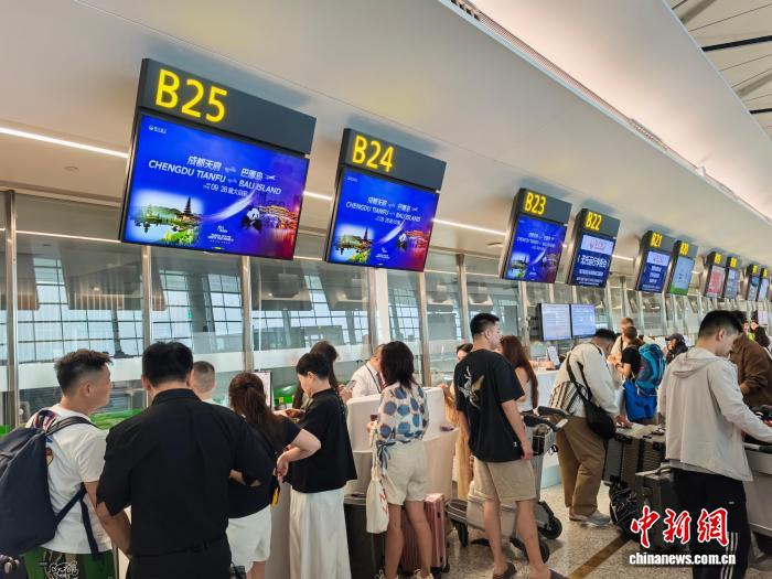 成都直飞巴厘岛航线开通 中新网成都9月26日电 (袁牟知博)9月26日15时31分,3U3985航班从成都起飞前往印度尼西亚巴厘岛, 标志着四川航空成都直飞巴厘岛航线正式开通,首班上座率超过90%。 前往巴厘岛的旅客排队登机。 四川航空 供图 据悉,该航线每日执飞1班,去程计划飞行6小时50分钟,回程计划飞行6小时45分钟。 2025年以来,川航"熊猫之路"国际航线网络已新增马德里、槟城、雅典等多个航点,为中国中西部地区 旅客提供更丰富、高效的出行方案,助力成都国际航空枢纽高质量发展。(完) 来源:中国新闻网 编辑:熊思怡 广告等商务合作,请点击这里 本文为转载内容,授权事宜请联系原著作权人 中新经纬版权所有,未经书面授权,任何单位及个人不得转载、摘编或以其它方式使用。 关注中新经纬微信公众号(微信搜索"中新经纬"或"jwview"),看更多精彩财经资讯。 ...