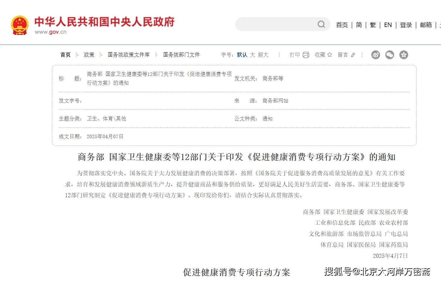 政策红利释放!《促进健康消费专项行动方案》出台,大健康产业迎来黄金发展期!