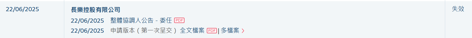 智通财经APP获悉,长乐控股有限公司(简称:长乐控股)于6月22日所递交的港股招股书满6个月,于12月22日失效,递表时力高企业融资有限公司为其独家 保荐人。 | | 22/06/2025 整體協調人公告 - 委任 歴 | | --- | --- | | 22/06/2025 | 長樂控股有限公司 22/06/2025 申請版本(第一次呈交)全文檔案 [四]多檔案》 | 招股书显示,长乐控股为一间设于新加坡的建筑及装修总承建商,专门从事楼宇建造工程,包括楼宇建造;维修及粉饰工程及改建及加建工程。于往绩记录 期,集团主要担任总承建商并从事楼宇建造,如兴建住宅、公寓大楼及样板房。集团亦从事主要与公营界别住宅楼宇有关的维修及粉饰工程以及现有建筑物 及设施(例如工厂大厦)的改建及加建工程。长乐控股目前持有建设局颁发的GB1牌照,可在新加坡承接一般建筑工程。 ...