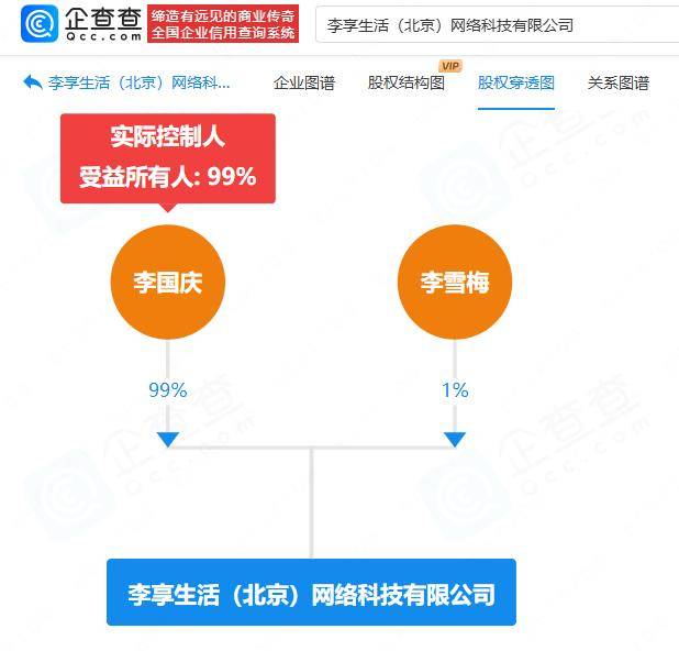 2025.12.15 爱企查App显示,李享生活(北京)网络科技有限公司成立于2025年9月,法定代表人为李雪梅,注册 资本100万元人民币,经营范围包括货物进出口、服装服饰零售、日用百货销售等,由李国庆、李雪梅 分别持股99%、1%。 | 在盘旗下空虚管周平台 | ■企业 · 字享生活(北京)网络科技有限公司 | 第一下 应用▼ 应 老户特惠 供需集市 | | --- | --- | --- | | 基本信息( | 司法信息 | 经营诊断: 知识产权; 企业发展1 经营状况 | | 工商注册 Q X生交足时提出处 | | | | 工限注册 历史工喬注册 | | 不下载数据 | | 企业名称 | 李享生活(北京) 网络科技有限公司 | 统一社会信用代码 1 91110108MAEXDNYD93 | | 法定代表人 | 字雷梅 TA有14家企业 > | 经营状变 开业 | | 成立日期 | 2025-09-28 | 行政区划 北京市海淀区 | | 注册资本(1) | 100万元) | 英國资本 1 | | 企业员盟 | 有限责任公司(自然人投资成担服) | 所属行业 专业技术服务业 | | 工商注册号() | ...