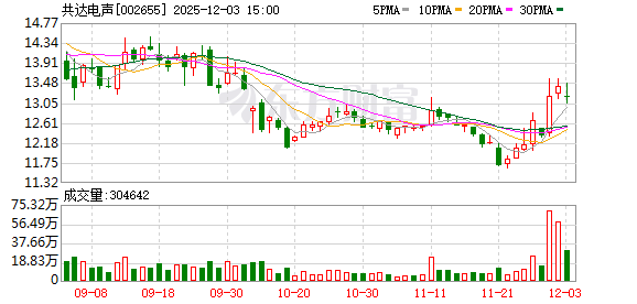 大宗交易详情 - 12月3日共达电声发生一笔大宗交易,成交量为400.00万股,成交金额为5060.00万元,成交价为12.65元 [2] - 该笔大宗交易成交价较当日收盘价13.18元折价4.02% [2] - 买方营业部为华福证券有限责任公司上海浦明路证券营业部,卖方营业部为中国中金财富证券有限公司深圳分公司 [2] 当日市场表现 - 12月3日共达电声收盘价为13.18元,当日下跌1.57% [2] - 当日换手率为8.42%,成交额为4.01亿元 [2] - 当日主力资金净流出1896.38万元 [2] 近期市场表现 - 近5个交易日共达电声股价累计上涨8.66% [2] - 近5个交易日资金合计净流入1.02亿元 [2]