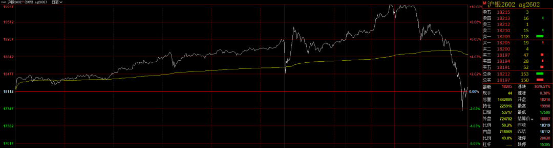 随着元旦假期临近,金属市场波动加剧,内外盘联动上演"冲高跳水"行情。12月29日,广期所铂、钯期货主力合约价格双双跌停,外盘NYMEX铂、 NYMEX钯期货价格同步大幅下挫。与此同时,沪银期货价格在创历史高位后快速回落。对此,分析人士提醒,市场投机情绪退潮与板块回调共振,金属 短期波动风险上升。 白银价格高位波动加剧 今日,内外盘白银价格均大幅波动:伦敦现货白银价格在开盘两小时内便出现超10%的振幅;沪银期货价格开盘后亦大幅波动,从一度大涨10%,到当日 午后快速回落,午后收盘时主力合约2602仅剩下0.51%的涨幅。 对此,中信建投(601066)期货宏观与贵金属分析师王彦青向记者表示,从基本面分析,白银价格受美元信用弱化、现货供需格局变化、地缘政治风险等 多重利多因素支撑,但这些因素均偏向长期。从当前来看,这种短期快速上涨行情存在过度交易长期利多因素的风险。 国信期货首席分析师顾冯达认为,本轮金属市场的上涨行情已脱离传统的供需框架,更多体现为宏观叙事主导下资金对战略性资源的集中配置,呈现 出"金融属性压倒产业需求"的典型特征。从短期来看,金属市场急速拉涨已明显偏离产业实际消费,市场情绪进入敏感区间。其中, ...
