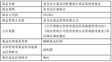 杨红离任富安达长盈混合基金 累计亏损逾两成