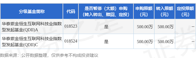 公告速递:华泰紫金恒生互联网科技业指数型发起基金(QDII)基金基金调整大额申购业务