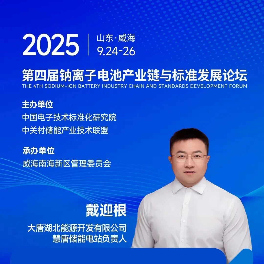 大唐百兆瓦时钠离子储能电站负责人戴迎根将出席第四届钠离子电池产业链与标准发展论坛