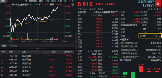 超50只成份股飘红!金融科技普涨,百亿金融科技ETF(159851)反弹拉升逾1%,资金抢筹逾2亿份