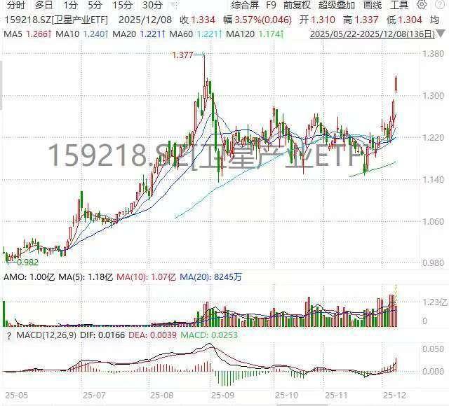 中期上升行情展开?卫星产业ETF(159218)均线多头排列,放量大涨3.4%