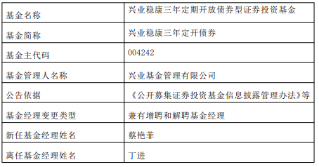 兴业稳康三年定开债券增聘蔡艳菲 丁进离任