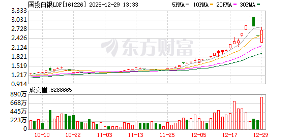 12月29日,国内唯一主投白银期货的公募基金国投白银LOF(161226.SZ)再现极端波动。该基金在复 牌后,开盘即一字跌停,随后被大量买单迅速撬开,价格直线拉升,最高报2.767元,距涨停价仅差 0.009元,截至午盘报2.746元,涨幅达8.8%,溢价率为34.06%,日内"过山车"行情让市场瞩目。 此次极端波动与白银市场的剧烈震荡深度绑定。12月29日,现货白银开盘后快速拉升,一度涨近6%突 破83.99美元/盎司,刷新历史新高,年内涨幅超170%,远超黄金72%的同期表现。但随后银价突然直线 跳水,跌幅一度扩大超5%,但之后又再度拉升,截至11时46分,涨幅维持在1.24%。 然而所谓"无风险收益"实则暗藏陷阱。国投瑞银基金已连发10余次风险提示,指出高溢价不具备可持续 性,并采取早盘停牌1小时、调整A类份额限购金额等降温措施。更关键的是,T+2结算机制让套利资金 陷入流动性困境。 事实正是如此。随着套利资金形成庞大的潜在抛压,12月25日、26日基金连续两个交易日跌停,溢价率 从近70%快速收敛至不足30%,部分套利资金无法及时卖出。 值得注意的,作为基金管理人,国投瑞银此前就曾发文提醒道,国投白 ...