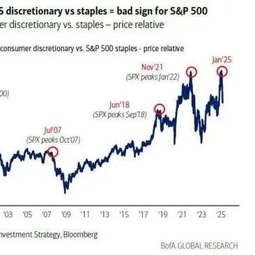 美国经济衰退风险 - 美国经济正站在悬崖边缘 一份糟糕的就业报告可能将其推入衰退深渊[1] - 美国现在离衰退仅一步之遥 美国国债收益率可能跌破4%[15] 美股市场表现 - 标普500指数近期一度跌破200日均线 为2023年10月以来首次[2] - 标普500指数与美国国债比率逼近关键的200日均线支撑位 该趋势线自2020年12月以来一直坚守[3] - 消费必需品相对非必需品的强势对标普500指数通常是不祥之兆[16] 就业数据影响 - 2月非农就业数据落在15.1万的尴尬区间 导致股市随后出现震荡走势[4] - 强劲非农数据(超过20万)支撑美股 疲软数据(低于12.5万)则利好债券、利空股市[4] 科技股表现变化 - "辉煌七巨头"市值蒸发3万亿美元[9] - 中国"BATX"(百度、阿里巴巴、腾讯、小米)市值在过去两个月内翻番 达到1.6万亿美元[9] 资金流向趋势 - 过去一周531亿美元资金涌入现金 120亿美元流入债券 229亿美元流入股票 10亿美元流入黄金[10] - 加密货币继续遭遇大规模赎回[10] - COMEX黄金库存量创历史新高 金价随之飙升[11] 债券市场展望 - 2025年将是债券之年 建议买入30年期美国国债[12] - 美国财政刺激结束加上可能的财政紧缩将导致就业疲软[12] - 美国家庭储蓄率上升 因对"财政救助"信心减弱[13] 欧洲军费开支影响 - 欧洲决心自行承担国防开支 将导致巨额财政压力[5] - 欧盟和英国重整军备计划将导致"惊人的财政超支"[7] - 德国国防开支仅占美国国防开支的7% 英国为8%[18] 国债收益率预测 - 预计到年底德国国债收益率可能超过美国国债收益率[8] - 德国国债收益率可能超过3%(15年来高点) 英国国债收益率可能超过5.5%(27年来高点)[18] - 日本30年期国债收益率处于17年来高位2.5%[19] 日本金融市场 - 日本央行政策利率0.5%严重落后于曲线[19] - 日本工资增长率5-6% 需要通过提高国债收益率或日元来收紧金融环境[19] - 日经指数在日本央行积极收紧政策前将表现不佳[19] 国际化投资机会 - 2025年将是"国际化"投资之年 看好国际股票相对美国股票表现[21] - 中国港股今年迄今上涨23% 德国DAX指数上涨18% Euro Stoxx指数上涨13% 而标普500指数下跌[22] - 投资者结构性地低配欧洲 高配美国科技股[23] 投资策略建议 - 建议撤离美股 转投"BIG"组合(债券、国际股票和黄金)[1] - 下一个交易机会是逢低买入超跌的美国半导体股票 买入滞涨的印度小盘股(自2024年9月高点下跌20%) 以及受益于弱美元的美股[9] - 建议卖出英国和欧盟债券[17]