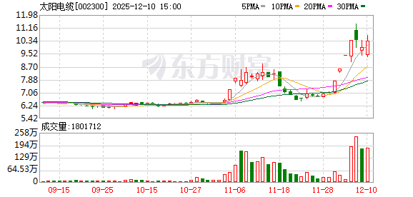 太阳电缆振幅15.05%,龙虎榜上机构买入1.02亿元,卖出4613.69万元