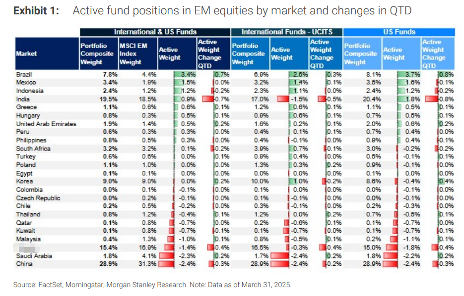 资金态度重大转变,外资大举买入中国股票。 5月12日,摩根士丹利最新研究显示,对冲基金,特别是美国的对冲基金,上周增加了对中国股票(包括购买在美上市中国股票和国内A股)的看 多押注,原因是对中美贸易谈判进展持乐观态度。 据央视新闻最新消息,商务部发布中美日内瓦经贸会谈联合声明指出,中国5月14日前修改税委会公告2025年第4号规定的对美国商品加征的从价 关税,其中,24%的关税在初始的90天内暂停实施,同时保留对这些商品加征剩余10%的关税,并取消根据税委会公告2025年第5号和第6号对这 些商品的加征关税;采取必要措施,暂停或取消自4月2日起针对美国的非关税反制措施。 值得注意的是,报告称,在刚刚结束的摩根士丹利中国BEST会议上,有80%以上的投资者表示,很可能在近期增加对中国股票的敞口。 低配+经济韧性=中国市场的吸引力 摩根士丹利数据显示,中国在全球新兴市场投资组合中仍然是最大的低配地区,相对于指数基准(MSCI新兴市场指数中国权重为31.3%)低配2.4 个百分点。 | | | International & US Funds | | | | International Funds - UCITS ...