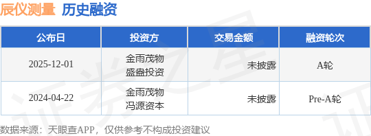 【投融资动态】辰仪测量A轮融资,投资方为金雨茂物、盛盎投资等