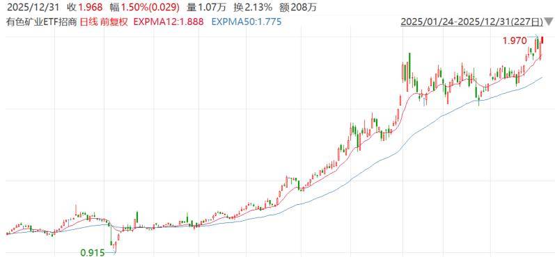 消息面上,有色行业首份业绩预告出炉。紫金矿业发布公告,公司预计2025年实现归属于上市公司股东的净利润 510亿元-520亿元,创下公司上市以来最好年度业绩,同比增长约59%-62%;扣非净利润475亿元-485亿元,同比 增长约50%-53%。 根据中证指数官网数据,有色矿业ETF招商(159690)跟踪的有色矿业指数,紫金矿业权重占比10.03%。 12月31日,有色板块早盘走强,江西铜业涨超4%,华友钴业、湖南白银、云南锗业、紫金矿业等跟涨。有色矿 业ETF招商(159690)涨1.5%,行情数据显示,该ETF近5个交易日获资金净流入超2500万元。 展望后市,国金证券认为,当市场对"AI未知"这一定价逻辑尚未改变时,缺乏秩序仍是黄金的有利环境。当AI泡 沫与黄金构成"哑铃",黄金作为AI持仓的保险已实现了高光时刻的价值。白银作为既有"类黄金"属性又与AI电力 相关的叙事资产,具备阶段性更高的弹性。但一旦AI叙事变得清晰,金银的叙事或也回归理性。 工业金属方面,联储证券指出,随着过去两年产能集中扩张周期结束,2026年全球可预见的新增矿山投产规模将 显著下降,矿端供应正式步入中长期结构性瓶颈期。在此背景 ...